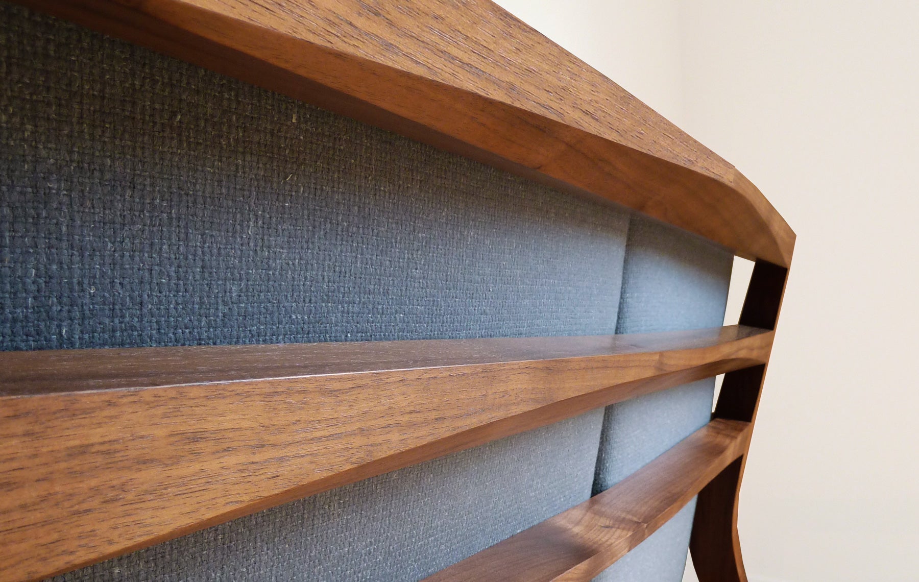This walnut two seater sofa added a touch of luxury to the formal environment of an executive office. Often the back of a sofa isn't visible, but given this piece was to be placed in the middle of a room, it needed to look just as good from behind.