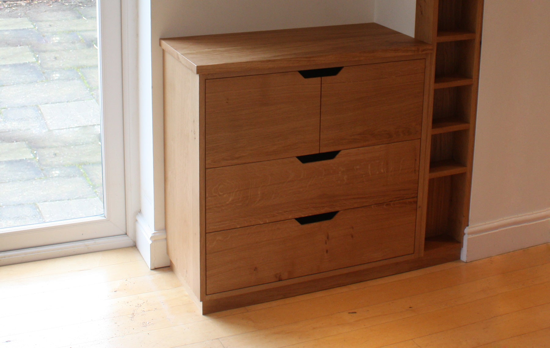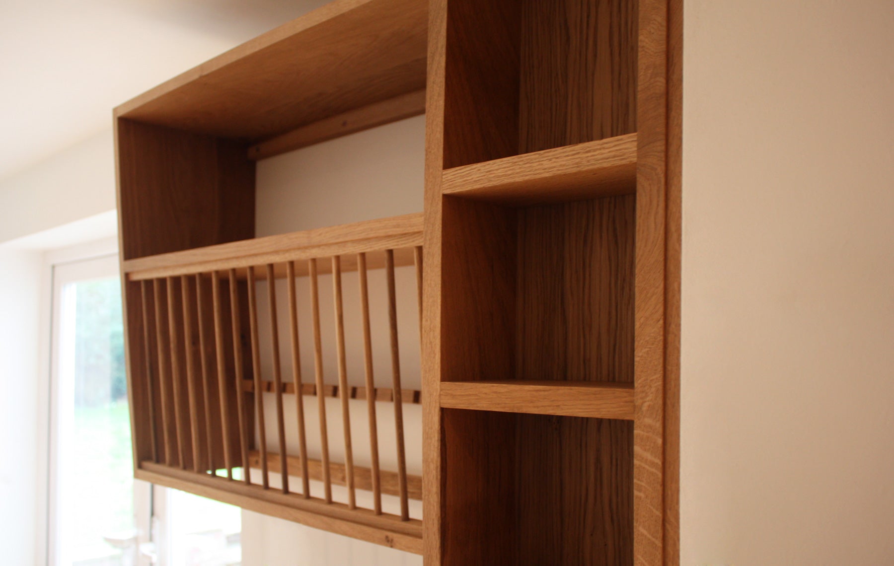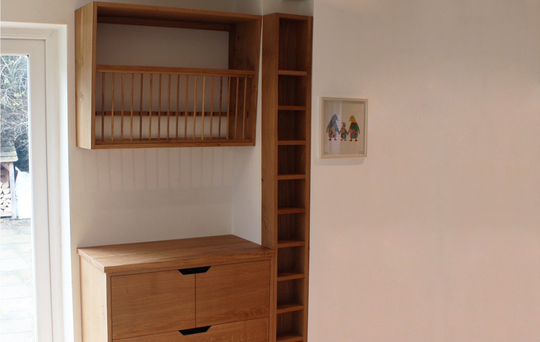 Additional storage which compliments the existing fitted kitchen but doesn't match it... was the brief for this project. These three pieces were designed to fit a slightly awkward space, with the tall thin spice rack making best use of a shallower depth.