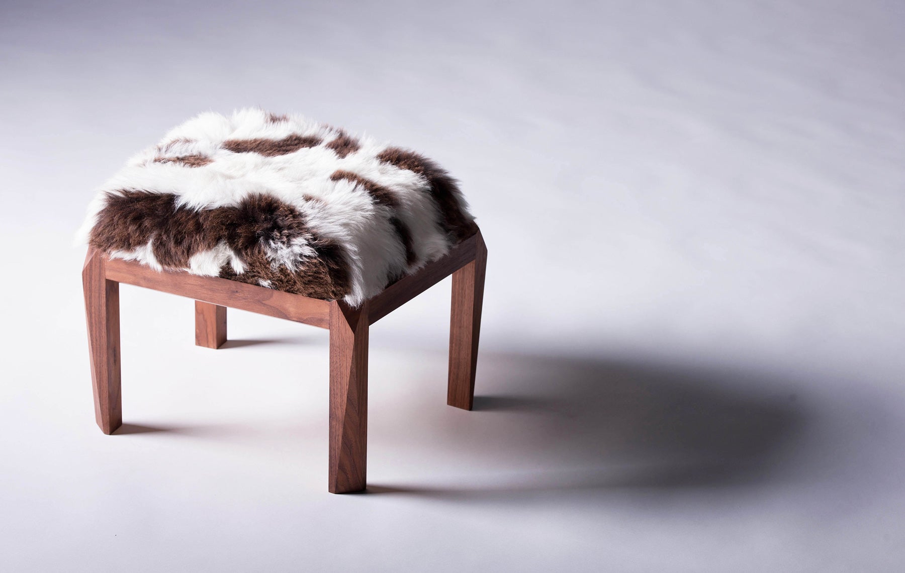 Taking inspiration from the highly sculpted form of our Bow sofa, this trapezium shaped stool made the perfect companion.