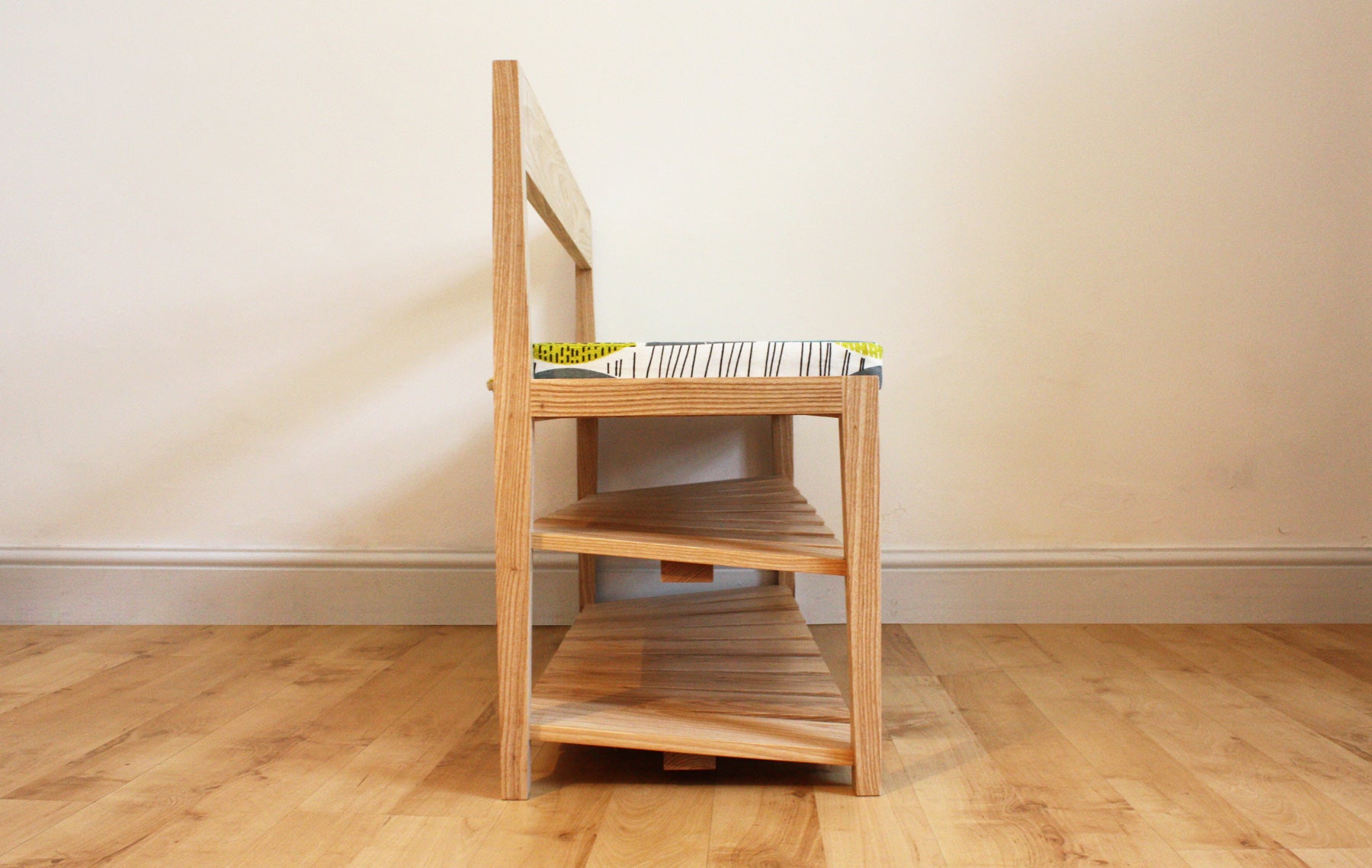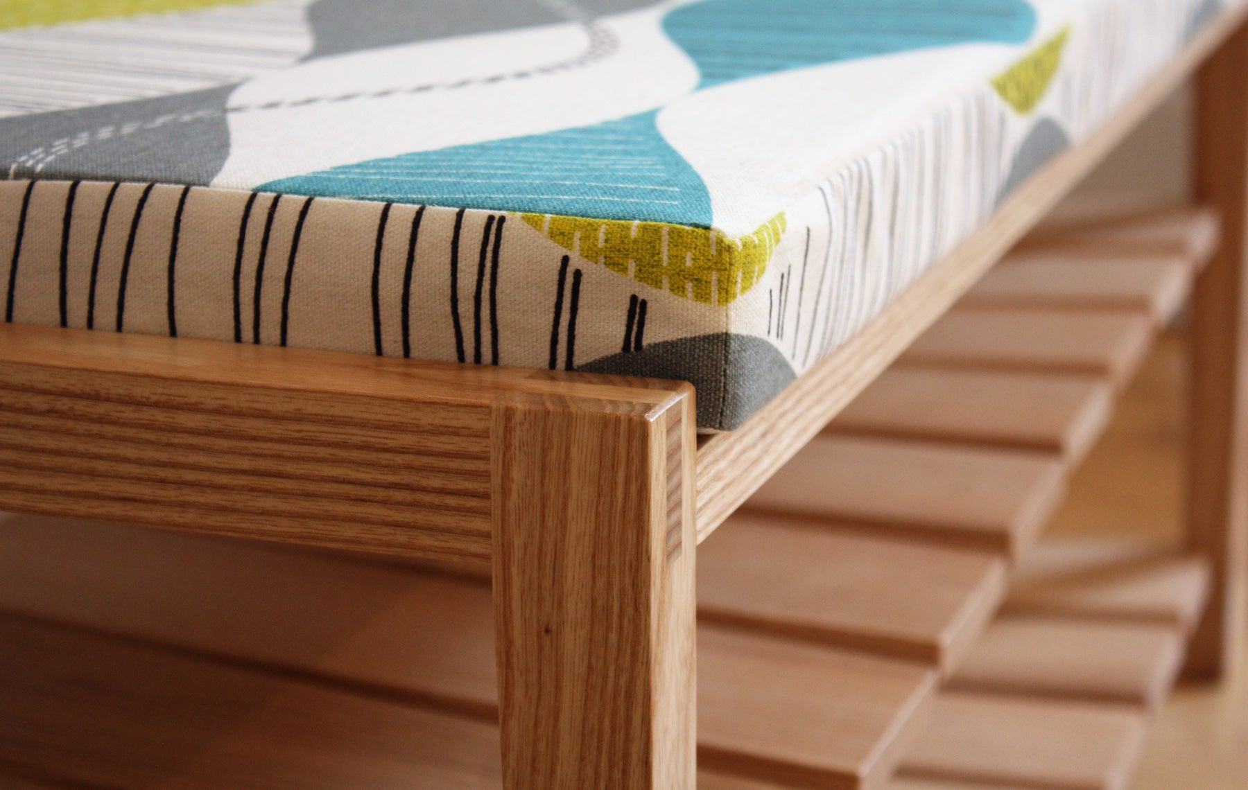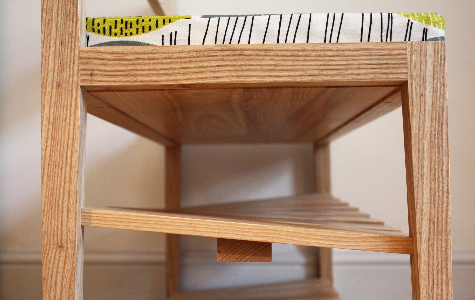 This simple seat design solved two problems in one; where to store your shoes, and where to sit when putting them on.