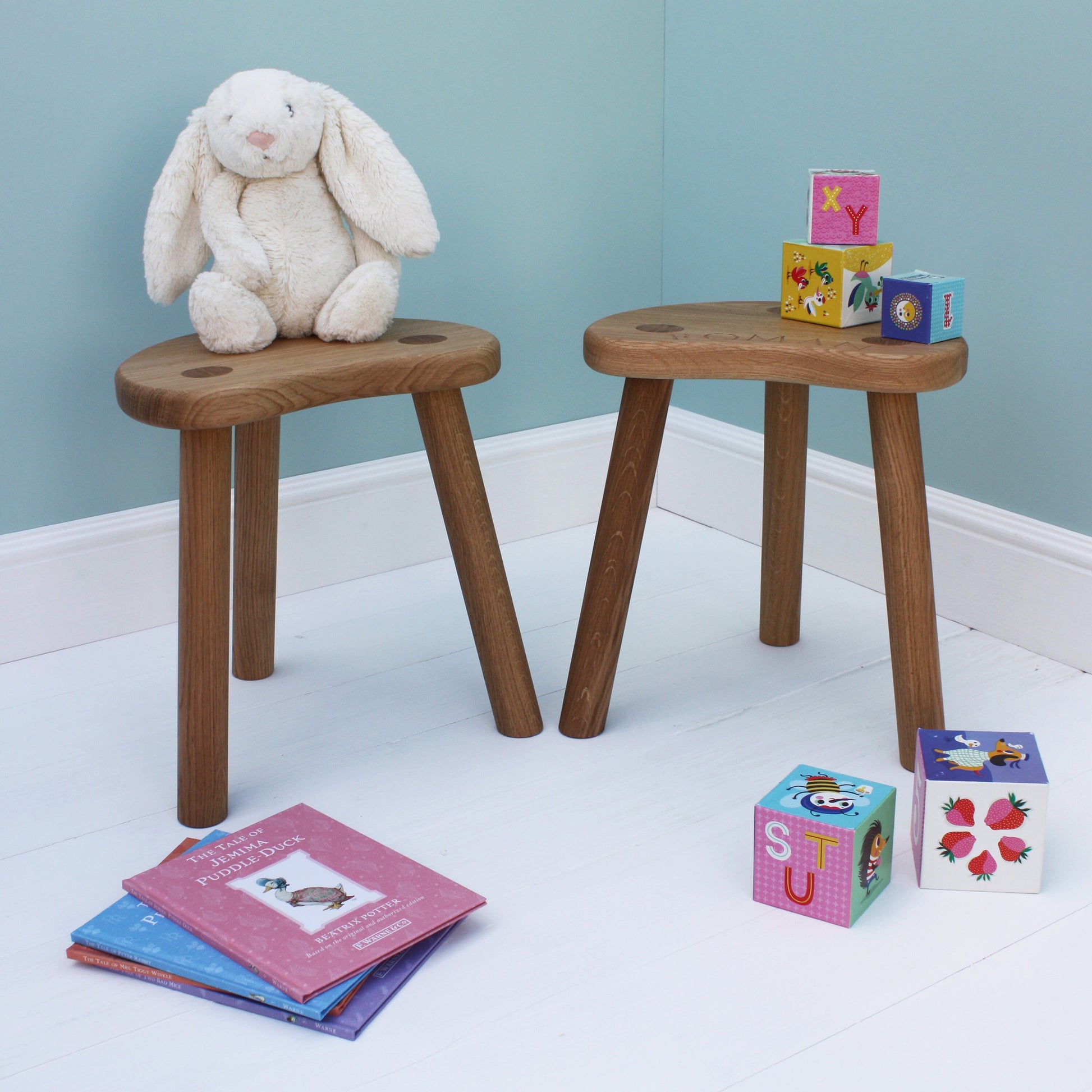 Our child stools are made from premium-grade oak wood, known for its durability and natural beauty, this sturdy three-legged stool is designed to withstand years of playful use. It’s smooth finish and gentle curves ensure a safe and comfortable seating experience for your little one and will make a delightful addition to any room.